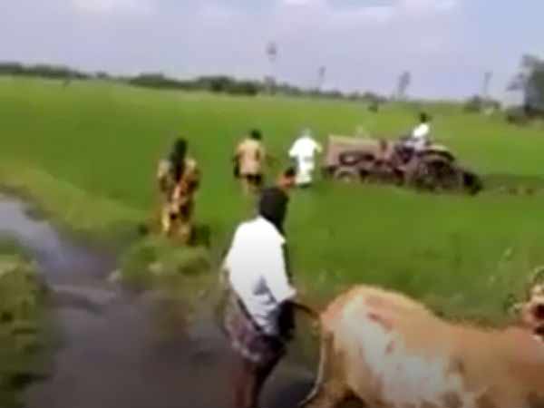 டிஎஸ்பி இரு தரப்பினரிடமும் விசாரணை நடத்தி கொண்டிருந்தபோதே சாமுண்டீஸ்வரியின் உறவினர் டிராக்டரை விவசாய நிலத்தில் இறக்கி விளைந்த பயிர்களை அழித்தார். இதனால் அதிர்ச்சியடைந்த சாவித்திரி ஓடி சென்று டிராக்டரின் குறுக்கே படுத்துக் கொண்டார்.