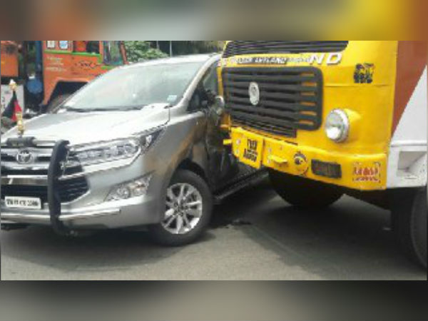 திமுக எம்எல்ஏ கார்த்திக் கார் மீது லாரி மோதி விபத்து