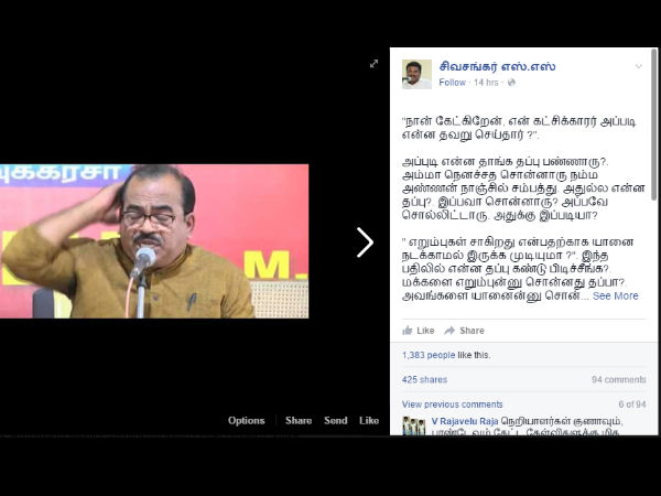 அப்புடி என்ன தாங்க தப்பு பண்ணாரு?. அம்மா நெனச்சத சொன்னாரு நம்ம அண்ணன் நாஞ்சில் சம்பத்து. அதுல்ல என்ன தப்பு?. இப்பவா சொன்னாரு? அப்பவே சொல்லிட்டாரு. அதுக்கு இப்படியா?