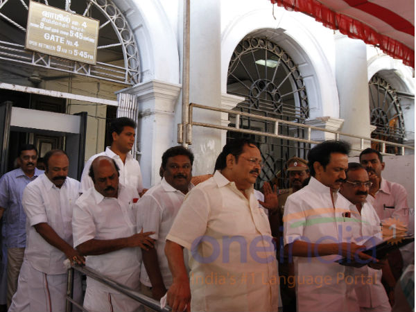 சென்னை: தமிழக சட்டசபையில் முல்லை பெரியாறு அணையின் நீர்மட்டத்தை உயர்த்துவது தொடர்பாக முதலமைச்சர் ஓ.பன்னீர்செல்வம் கொண்டு வந்த தனித் தீர்மானம் ஜெயலலிதா புகழ் பாடுவதாக அமைந்துள்ளதாகக் கூறி திமுக மீண்டும் வெளிநடப்பு செய்தது.