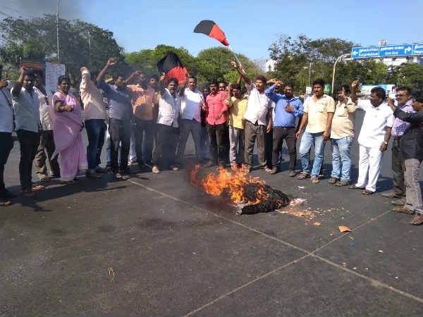 கருணாநிதி குறித்து அநாகரிக டிவிட்.. திமுகவினர் போராட்டம்.. எச் ராஜா கொடும்பாவி எரிப்பு!