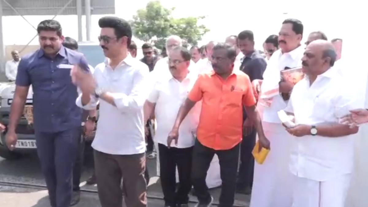 அதன்பிறகு சற்று தள்ளி நிழலில் நின்ற முதலமைச்சர் ஸ்டாலின், தன்னை வழியனுப்பி வைக்க வந்தவர்களை வரிசையாக சந்தித்து வாழ்த்துப் பெற்றுக்கொண்டார்.