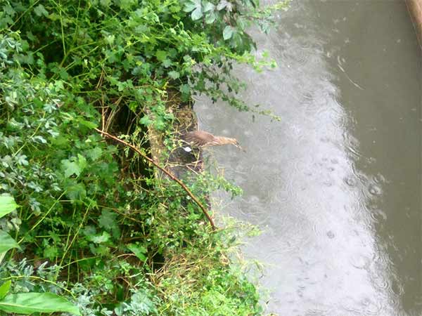 மழை பெய்தாலும் வயிறு பசிக்குமே, இதோ இந்த நாரை மழை நீருக்குள் மீன் வருகிறதா என்று கால்கடுக்கக் காத்திருக்கிறது அதைக் கொத்திச் செல்ல. நாரைக்குத் துணையாக கருநீலத்தில் நீண்ட மூக்குடன் நானும் காத்திருக்கிறேன் என்று காத்திருக்கிறது இந்த மீன்கொத்திப் பறவை.