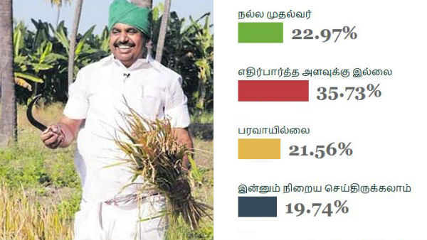 இப்போது 4வது ஆண்டில் முதல்வராக அடியெடுத்து வைக்கிறார்.. அந்த வகையில், நாமும் ஒரு கருத்து கணிப்பினை நம் வாசகர்களிடம் நடத்தினோம்.. " நல்ல முதல்வர்" என்ற ஆப்ஷனுக்கு 22.97 சதவீதம் பேர் வாக்களித்துள்ளனர். "எதிர்பார்த்த அளவுக்கு இல்லை" என்று 35.73 சதவீதம் பேரும், "பரவாயில்லை" என்று 21.56 சதவீதம் பேரும், "இன்னும் நிறைய செய்திருக்கலாம்" என்று 19.74 சதவீதம் பேரும் வாக்களித்துள்ளனர்.