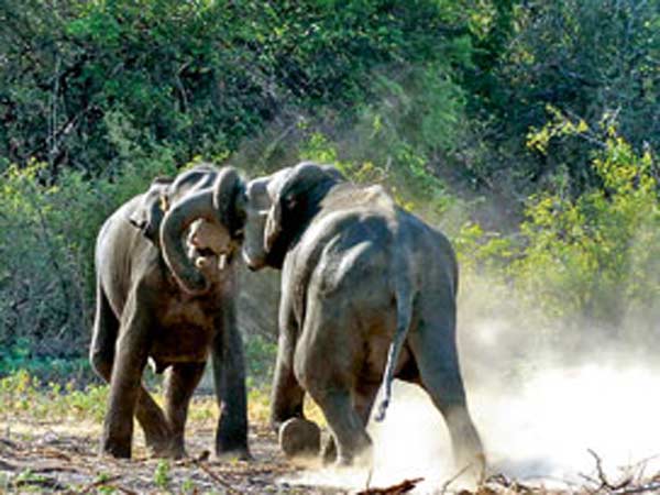 யானைகள் மோதலால் முகாம் புழுதி கிளம்பி போர்க்களம் போன்று காட்சி அளித்தது. ஆங்காங்கே மரத்தில் கட்டப்பட்டிருந்த வனத்துறை யானைகளின் பிளிறல் சத்தம் வனப்பகுதி எங்கும் எதிரொலித்தது.