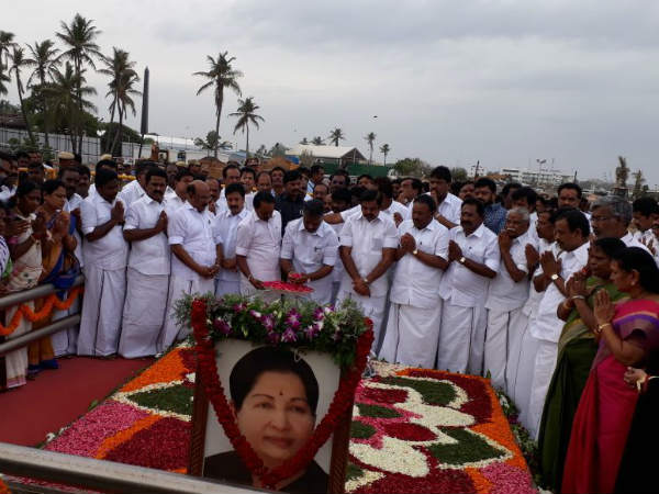 சட்டசபை கூட்டத் தொடர் முடிவடைந்ததை அடுத்து ஜெயலலிதா நினைவிடத்தில் முதல்வர், துணை முதல்வர் மரியாதை செலுத்தினர்.
