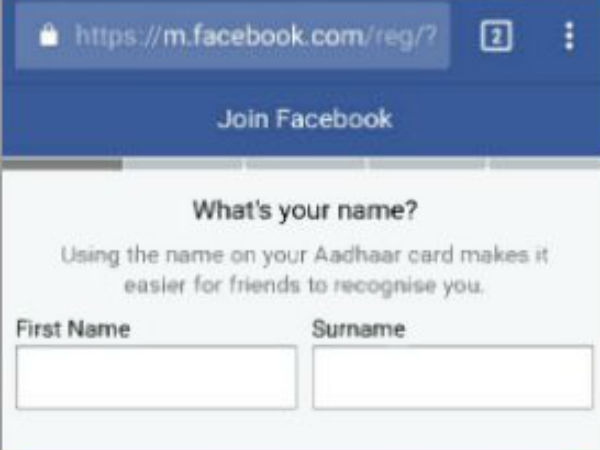 ஆதார் விவரங்கள் கேட்பது மட்டும் இல்லாமல் ஆதாரில் இருப்பது போல பெயர் வைக்க வேண்டும் என்றும் பேஸ்புக் கேட்டு இருக்கிறது.