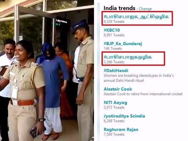 மாணவி சோபியா கைது செய்யப்பட்டதை அடுத்து #பாசிசபாஜக_ஆட்சிஒழிக என்ற ஹேஷ்டேக் 1 மணி நேரத்தில் தேசிய அளவில் வைரல் ஆகி உள்ளது..