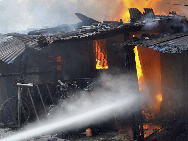 வட பழனி 100 அடி சாலையில் வீடுகளில் பரவிய தீ.. போலீஸ் வாகனத்திலிருந்து பரவியது
