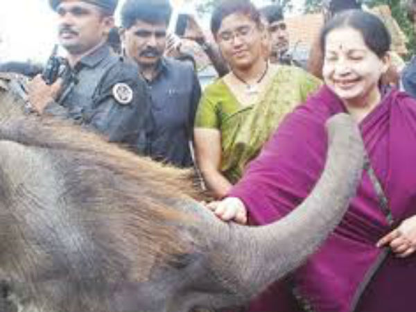 கடந்தாண்டு ஜுலை மாதம் கொடநாட்டில் தங்கி இருந்த தமிழக முதல்வர் ஜெயலலிதா கார் மூலம் அங்கிருந்து முதுமலை புலிகள் காப்பகத்திலுள்ள தெப்பக்காடு வளர்ப்பு யானைகள் முகாமிற்கு சென்றார். அப்போது அங்கிருந்த குட்டியானை ஒன்று அவரை திடீரென முட்டி தள்ளியது.