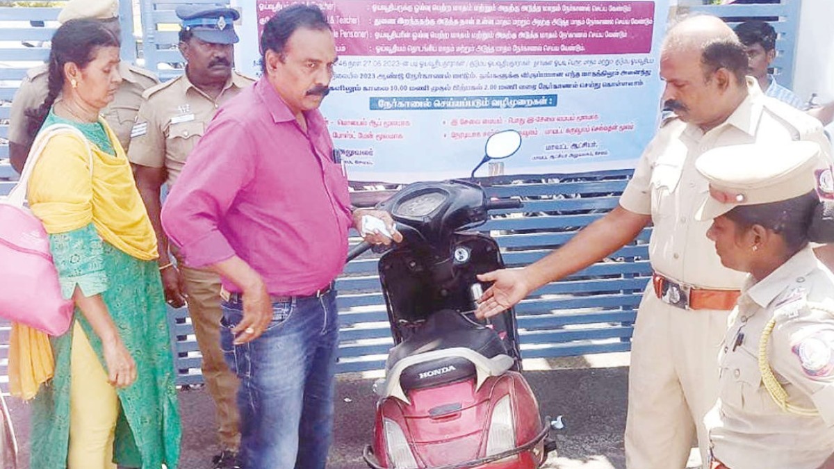 இதையடுத்து இருசக்கர வாகனத்தை அப்புறப்படுத்திய போலீசார் கலெக்டர் அலுவலக நுழைவு வாயில் பகுதிக்கு எடுத்து வந்தார்கள். பின்னர் ஹெல்மெட் அணியாதது, ஒருவழிப்பாதையில் வந்தது, ஓட்டுனர் உரிமம் இல்லாமல் வாகனம் ஓட்டியது என போக்குவரத்து விதிகளை மீறிய காரணத்தால் ரூ.2,700 அபராதத்தை அவருக்கு போலீசார் விதித்தார்கள்.