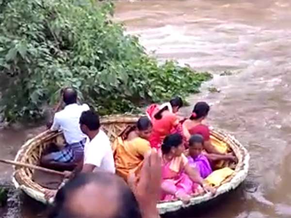 நீலகிரி: அடித்துக் கொண்டு போகும் வெள்ளத்திற்கு மத்தியில், பரிசலில் உயிரை பணயம் வைத்து ஒரு கல்யாண பெண்ணை கரை சேர்த்து அசத்தியுள்ளனர் மாப்பிள்ளை வீட்டார்.