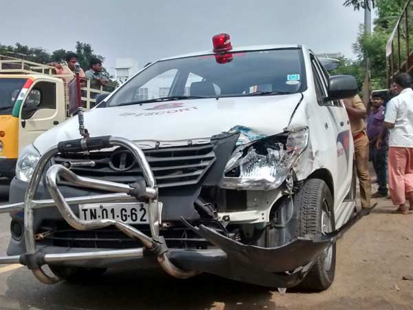 ஈசிஆர் ரோட்டில் 'ஏர்போர்ட்' நாராயணசாமியின் பைலட் கார் மீது லாரி மோதியது!