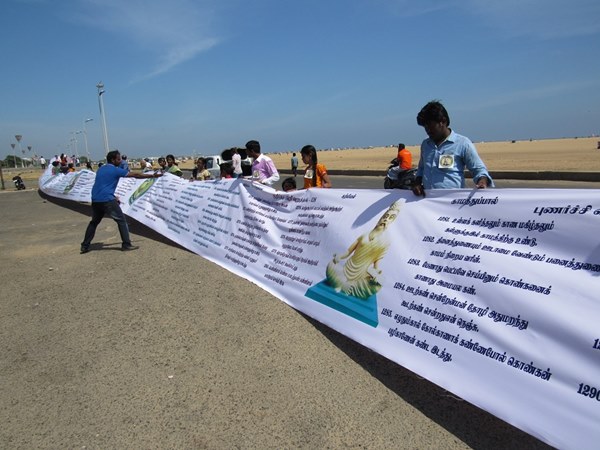 வரலாற்றில் முதல் முறையாக உலகின் மிக நீண்ட திருக்குறள் பதிப்பு சென்னை மெரீனா கடற்கரை திருவள்ளுவர் சிலை அருகே வெளியிடப்பட்டது.