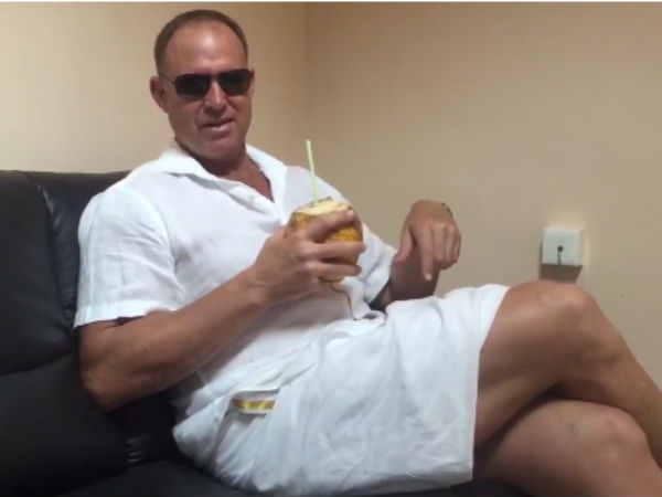 கட்டிய வேட்டியும், கையில் இளநீருடனும் உட்கார்ந்தபடி, வெயில்தான். ஆனாலும் என்ன வேட்டியில் படு கூலாக இருக்கிறன் பாருங்கள் என்று ஜாலியாக கமெண்ட் போட்டுள்ளார் ஹெய்டன்.