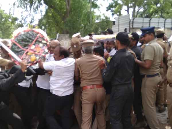 வெளியூர்களில் இருந்தும் தொண்டர்கள் குவிந்ததால் போதுமான போலீஸார் இல்லாததால் அவர்களை கட்டுப்படுத்த முடியவில்லை. இதனால் போலீஸார் திணறினர்.
