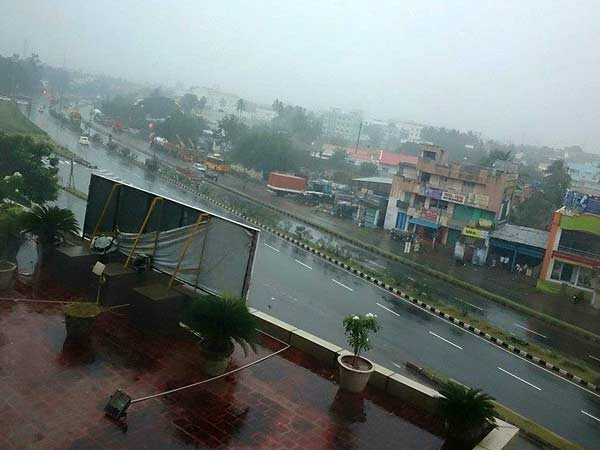 சென்னையை பொருத்தமட்டில் நேற்று காலையில் வானம் தெளிவாக காணப்பட்டது. பகலெல்லாம் வெளியில் கொளுத்தியது. இரவு சுமார் 11.15 மணி அளவில் இடி, மின்னலுடன் பலத்த மழை பெய்தது. சென்னை நகருக்குள் பல்வேறு இடங்களில் பலத்த மழை கொட்டித் தீர்த்தது.
