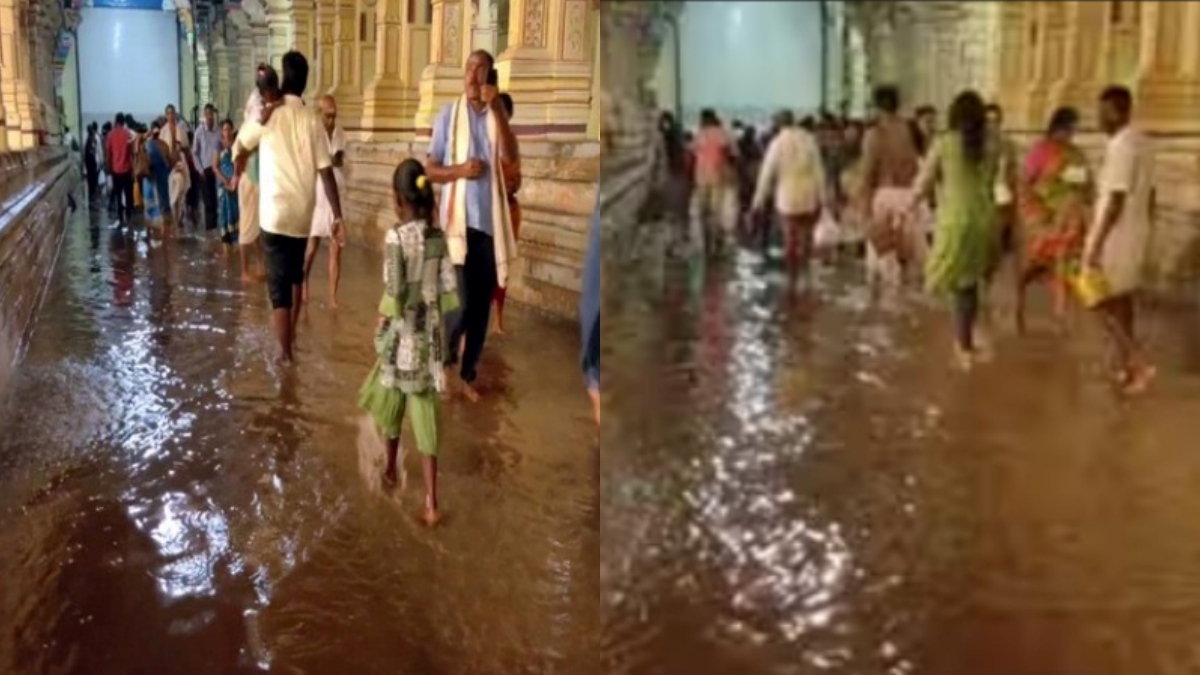ராமேஸ்வரம் கோவிலில் திடீர் அருவி.. குளமாக மாறிய பிரகாரம்.. நடக்க முடியாமல் சிரமப்பட்ட பக்தர்கள்