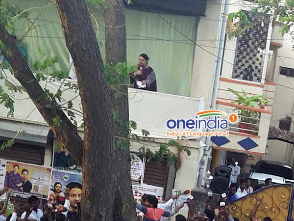 தீபா வீட்டின் முன்பு இன்று திரண்ட ஆதரவாளர்கள் அவர் அரசியலுக்கு வர வேண்டும் என்று முழக்கங்களை எழுப்பினார்கள். இன்று கூடிய மக்கள் மத்தியில் பேசிய தீபா, எம்.ஜி.ஆர்,ஜெயலலிதாவை வணங்கி விட்டு பேச்சை தொடங்கினார்.