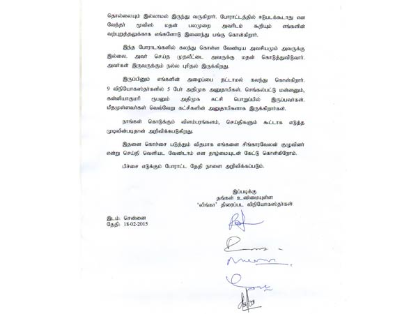 யாருடைய பெயரும் இல்லாமல், நான்கு கையெழுத்துகள் மட்டும் (அவை யாருடையவை என்றும் தெரியவில்லை) போடப்பட்டு வெளியாகியுள்ள அந்த அறிக்கை: