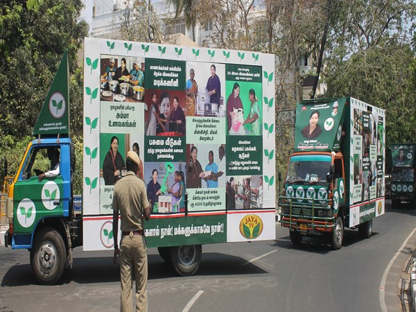 அதிமுக பிரசார வாகனங்கள் போயஸ் கார்டன் வந்தன