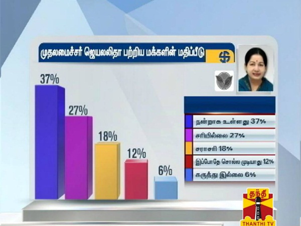 முதல்வர் ஜெயலலிதா பற்றிய மக்களின் மதிப்பீடு நன்றாக உள்ளது - தந்தி டிவி கருத்துக்கணிப்பு