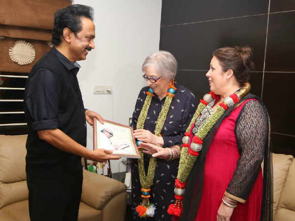 திமுக செயல் தலைவர் மு.க. ஸ்டாலினுடன் பென்னிகுவிக் வாரிசுகள் சந்தித்தனர்.