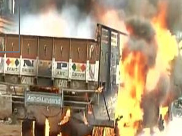 ஈரோடு அருகே கர்நாடக லாரி மீது பெட்ரோல் குண்டு வீச்சு !!