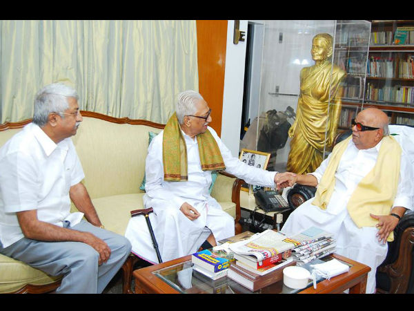 இந்நிலையில் உடல்நலம் தேறிய அன்பழகன் நேற்று திமுக தலைவர் கருணாநிதியை அவரது கோபாலபுரம் இல்லத்தில் சந்தித்துப் பேசினார். இந்த சந்திப்பின் போது வரும் 15-ந் தேதி நடைபெற உள்ள திமுக பொதுக் குழுவில் நிறைவேற்றப்பட இருக்கும் தீர்மானங்கள் குறித்து இருவரும் விவாதித்துள்ளனர்.