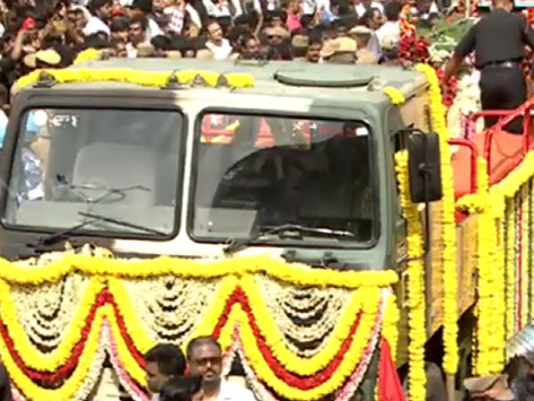 இதையடுத்து இறுதியாக அண்ணா சாலைக்கு அவரது உடல் வந்தடைந்தது. அவரது உடலுக்கு முப்படையினர் மரியாதை செய்தனர். பின்னர் 27 குண்டுகள் முழங்கப்பட்டது.