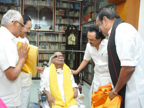 இரண்டு ஆண்டுகளுக்குப் பின்னர் தன்னை சந்திக்க வந்த வைகோவை அடையாளம் கண்டு புன்னகைத்தார் திமுக தலைவர் கருணாநிதி.