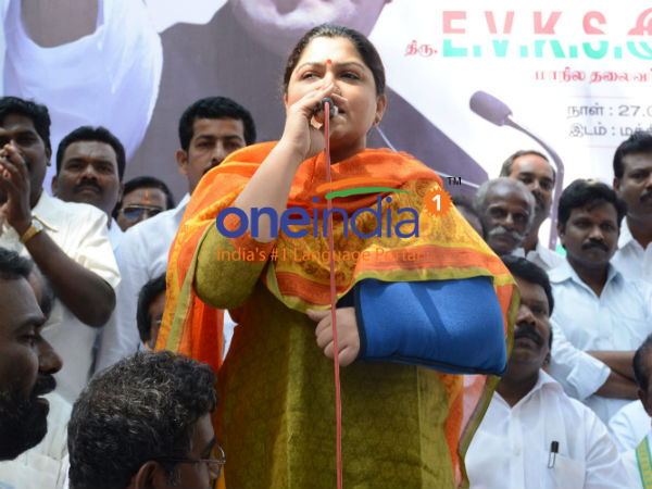 இதில் தமிழக காங்கிரஸ் தலைவர் ஈ.வி.கே.எஸ். இளங்கோவன் கலந்து கொண்டு கண்டன உரையாற்றினார். ஆர்ப்பாட்டத்தில் நடிகை குஷ்புவும் கலந்து கொண்டார். கையில் கட்டுடன் அவர் ஆவேசமாக பேசினார்.