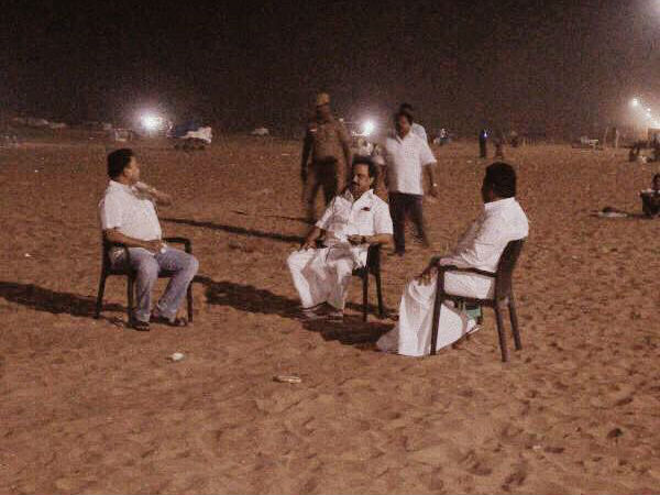 சென்னை: தமிழகத்தில் பரபரப்பான அரசியல் சூழல் நிலவி வரும் நிலையில், மெரீனா கடற்கரையில் கட்சி நிர்வாகிகளுடன் திமுக செயல் தலைவர் மு.க.ஸ்டாலின் திடீர் ஆலோசனை நடத்தினார்.