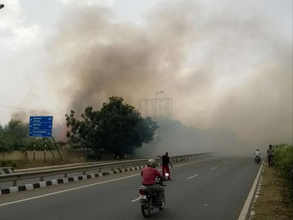 காற்றின் வேகம் அதிகமாக இருந்த காரணத்தால் அருகில் இருந்த முட்புதரும் தீ பிடித்து எரிந்தது. இதனால் ஆலையில் மேற்கூரையிலும் தீ பற்றியது. கொழுந்து விட்டு எரிந்த தீயினால் திருச்சி - சென்னை தேசிய நெடுஞ்சாலை ஒரே புகை மண்டலமாக காட்சியளித்தது. இதனால் வாகன ஓட்டிகள் சிரமத்திற்கு ஆளாகினர்.