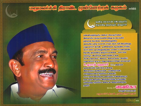 மதிமுக சார்பில் நாளை புனித ரமலான் இஃப்தார் நோன்பு திறக்கும் நிகழ்ச்சி