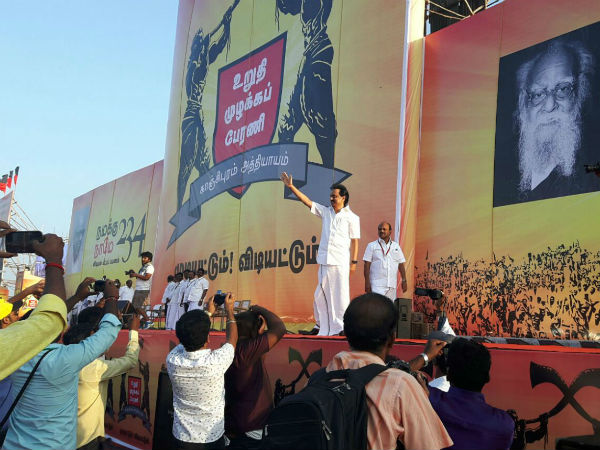 இந்நிலையில் காஞ்சிபுரம் மாவட்டம் ஒரகடம் அருகே உள்ள ஆப்பூரில் திமுக சார்பில் இன்று உறுதி முழக்கப் பேரணி நடைபெற்றது. பேரணியில் கலந்து கொண்ட ஸ்டாலின் பேசுகையில்,