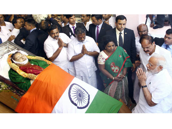 PM @narendramodi pays tribute to #Jayalalithaa in Chennai pic.twitter.com/Ep9BdJA5ct