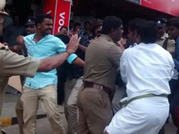 பாதுகாப்புக்காக வந்திருந்த போலீசார் தலையிட்டு, ரத்தம் சொட்டச் சொட்ட நின்றிருந்த மாணவர்களை கைது செய்து வெளியே அழைத்துச் சென்றனர். அவர்களுக்கு முதலுதவி கூட அளிக்காமல், ஜாம்பஜார் அருகே உள்ள ஒரு மண்டபத்தில் தங்க வைத்தனர்.