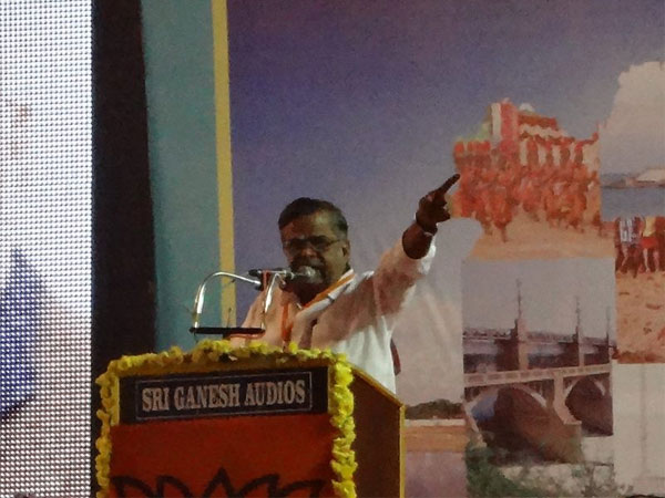 இக் கூட்டத்தில் பாஜகவின் மாநில தலைவர் பொன். ராதாகிருஷ்ணன் வரவேற்புரையாற்றினார். அக்கட்சி நிர்வாகிகள் வானதி ஸ்ரீனிவாசன், ஹெச். ராஜா, தமிழிசை சவுந்தராஜன், இல. கணேசன் உள்ளிட்டோர் உரையாற்றினர்.