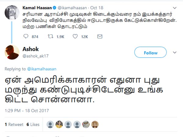 இந்நிலையில் சரியான ஆராய்ச்சி முடிவுகள் வரும் வரை தனது ரசிகர்கள் மக்களுக்கு நிலவேம்பு கஷாயம் கொடுக்க வேண்டாம் என கமல் தனது ட்விட்டர் பக்கத்தில் தெரிவித்துள்ளார். இதற்கு நெட்டிசன்கள் எதிர்ப்பு தெரிவித்துள்ளனர்.