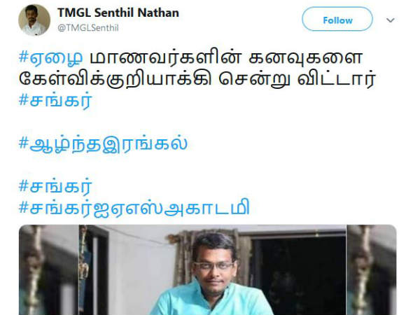 ஏழை மாணவர்களின் கனவுகளை கேள்விக் குறியாக்கி சென்று விட்டார்...!! #சங்கர்