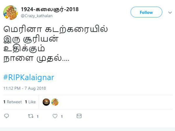 நீ மறைந்த பிறகும் உனக்கும் தமிழ்மொழிக்கும் வெற்றி கிடைத்துள்ளது தலைவா #கருணாநிதி ஐயா, மெரினா மேலும் புனிதம் அடைகிறது #Kalaignar #Karunanidhi