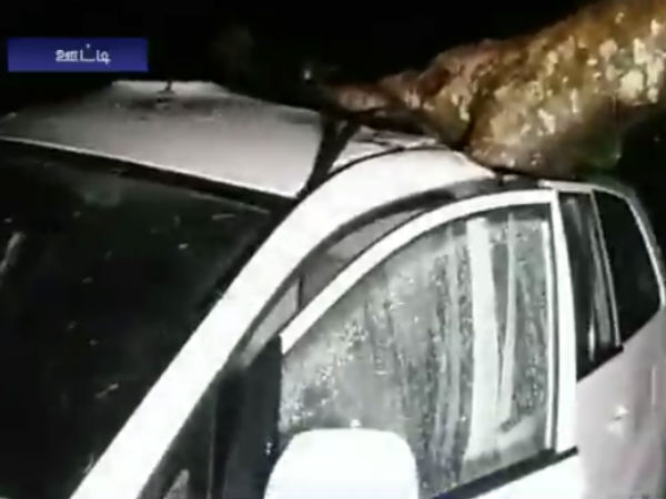 ஊட்டி குன்னூரில் நேற்று இரவு கனமழை பெய்துள்ளது. இதனால் ஊட்டி - மேட்டுப்பாளையம் சாலையில் நேற்று இரவு வரிசையாக மரங்கள் சாய்ந்துள்ளன. அப்போது சுற்றுலாப்பயணி ஒருவரின் கார் மீது மரம் சாய்ந்துள்ளது.