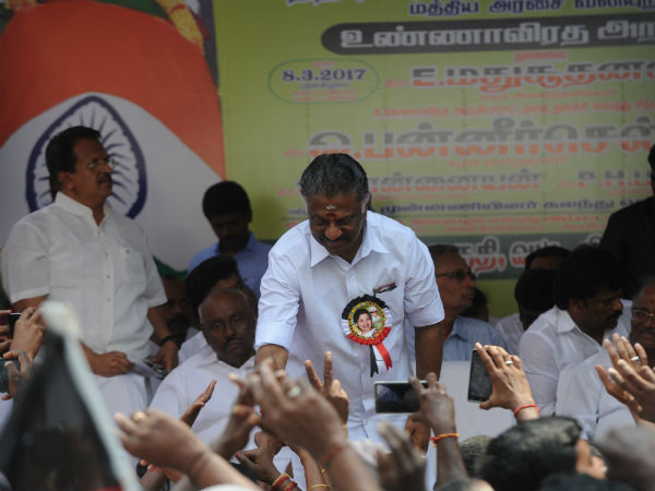 சென்னை எழும்பூர் ராஜரத்தினம் மைதானத்தில் அதிமுகவின் மூத்த தலைவர் மதுசூதனன் தலைமையில் நடக்கும் உண்ணாவிரத போராட்டத்தில் ஓ.பன்னீர்செல்வம், பி.எச்.பாண்டியன், பொன்னையன் உள்ளிட்ட பல மூத்த தலைவர்கள் பங்கேற்றுள்ளனர். இந்த பந்தலில் பங்கேற்றுள்ள தொண்டர்களை உற்சாகப்படுத்தும் வகையில் பிச்சைக்காரன் திரைப்படத்தில் இருந்து, நூறு சாமிகள் இருந்தாலும் அம்மா உன்னைப்போல் ஆகிடுமா என்ற பாடல் ஒளிபரப்பாகி வருகிறது.