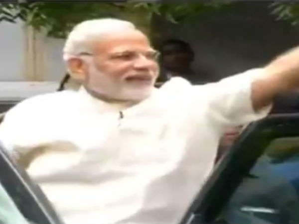 அப்போது கடற்கரை சாலை வழியாக மோடியின் கான்வாய் வாகனம் வந்தபோது வழிநெடுகிலும் தொண்டர்களும், மக்களும் அவருக்கு உற்சாக வரவேற்பு கொடுத்தனர். இதனால் மகிழ்ச்சி அடைந்த மோடி, மழை தூறி கொண்டிருந்தபோதிலும் காரில் தொங்கியபடியே தொண்டர்களுக்கு கை அசைத்து உற்சாகப்படுத்தினார்.