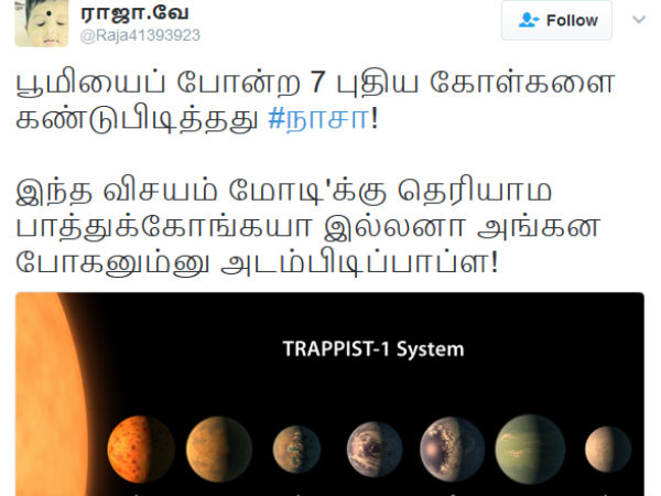பூமியைப் போன்ற 7 புதிய கோள்களை கண்டுபிடித்தது #நாசா! இந்த விசயம் மோடி'க்கு தெரியாம பாத்துக்கோங்கயா இல்லனா அங்கன போகனும்னு அடம்பிடிப்பாப்ள