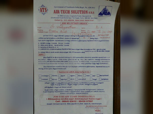 அழைப்புக் கடிதம் அனுப்பியுள்ள 5 தனியார் நிறுவனங்களும் மோசடி நிறுவனங்கள் என்று தெரிய வந்துள்ளது. ஏனெனில் பணியாளர் தேர்வில் பங்கேற்க பதிவுக் கட்டணமாக முறையே ரூ. 250 முதல் ரூ. 750 வரை வரைவு காசோலையாக அனுப்ப வேண்டும் என்று கூறியுள்ளன.