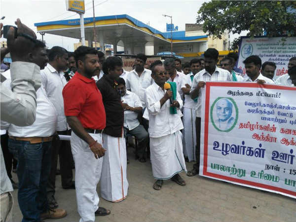வாணியம்பாடி கனரா வங்கி அருகில் நடைபெற்ற இந்த ஆர்ப்பாட்டத்துக்கு பாலாற்று உரிமைப் பாதுகாப்பு இயக்க அமைப்பாளர் மு. சுரேசு தலைமை தாங்கினார். தெக்குப்பட்டு பாபு, வடக்குப்பட்டு பிரபு, புல்லூர் குமார் ஆகியோர் முன்னிலை வகித்தனர்.