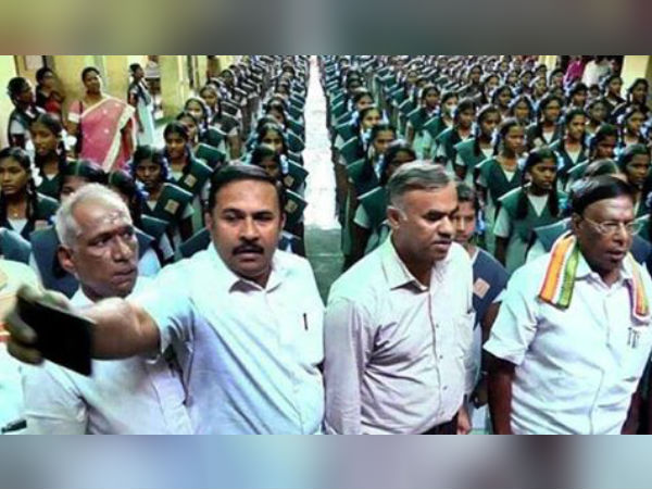 அப்போது உருளையன்பேட்டை தொகுதி காங்கிரஸ் தலைவர் ரகுமான், முதல்வர் நாராயணசாமி உள்ளிட்டோருடன் செல்ஃபி எடுத்தார். அவரது இந்த செயல் பெரும் சர்ச்சையை கிளப்பியது.
