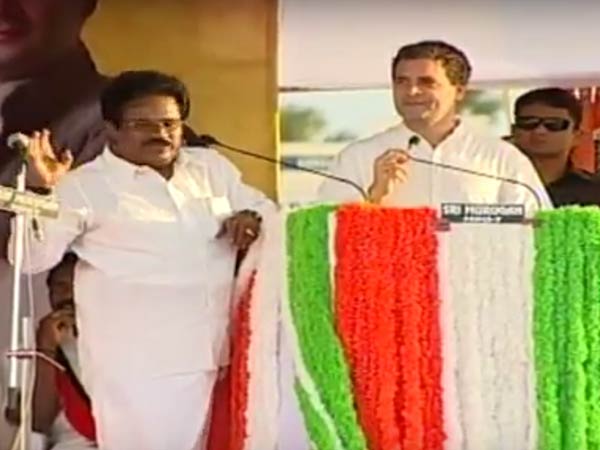 ஸ்டாலினை தொடர்ந்து பிரசாரம் செய்து ராகுல் காந்தி பேசினார். அவர் ஆங்கிலத்தில் பேசியதை மூத்த தலைவரும், அகில இந்திய காங்கிரஸ் கட்சியின் தேசியச் செயலாளருமான திருநாவுக்கரசர் தமிழில் மொழி பெயர்த்து கூறினார்.